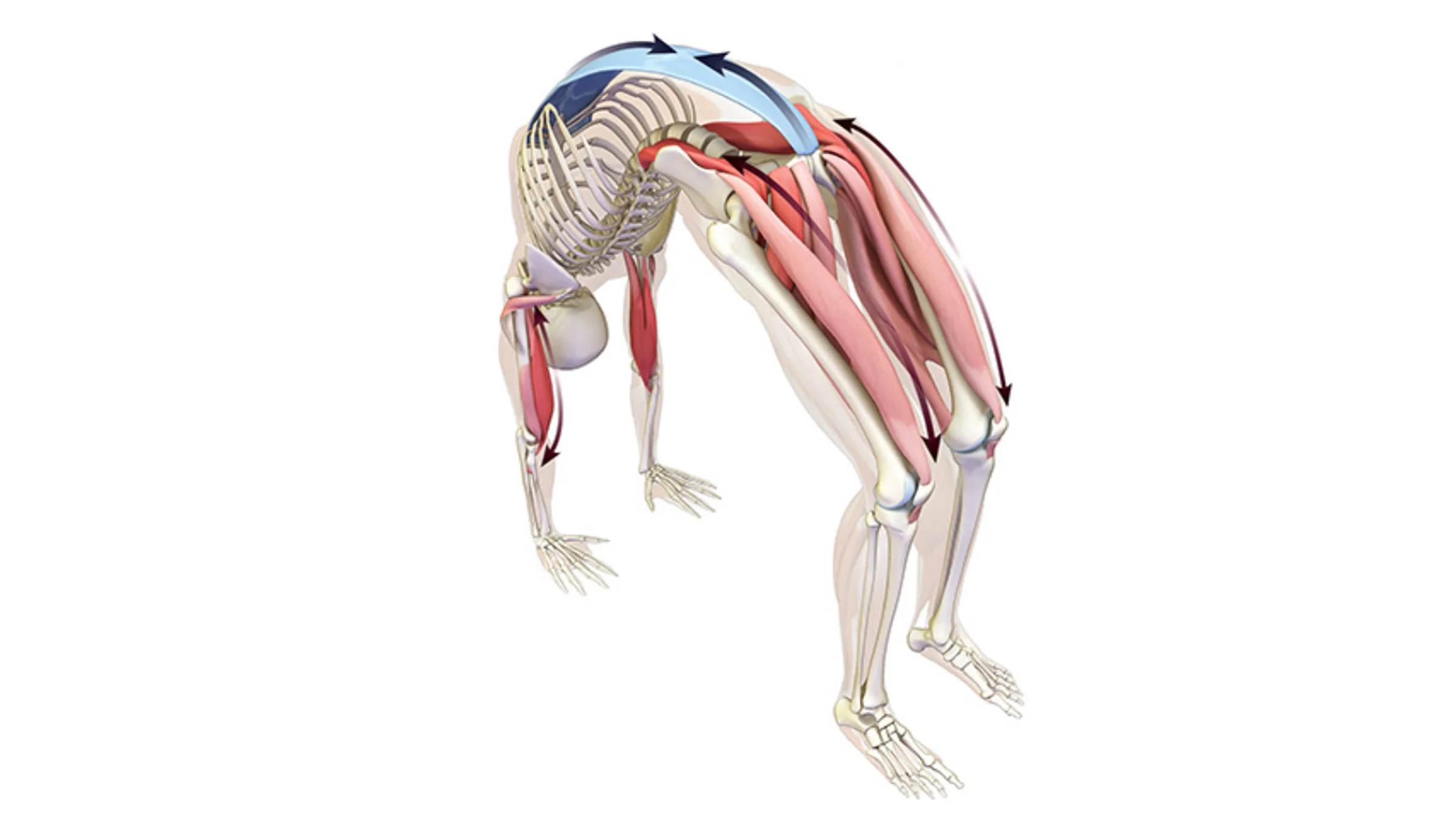 Once we initiate the back bend with nutation, then we can start to begin to engage the gluteal muscles, hamstrings and quads to entend the hip foward and to lengthen the hip flexors. This takes practice to cultivate but is very important, especially in deep backbends.