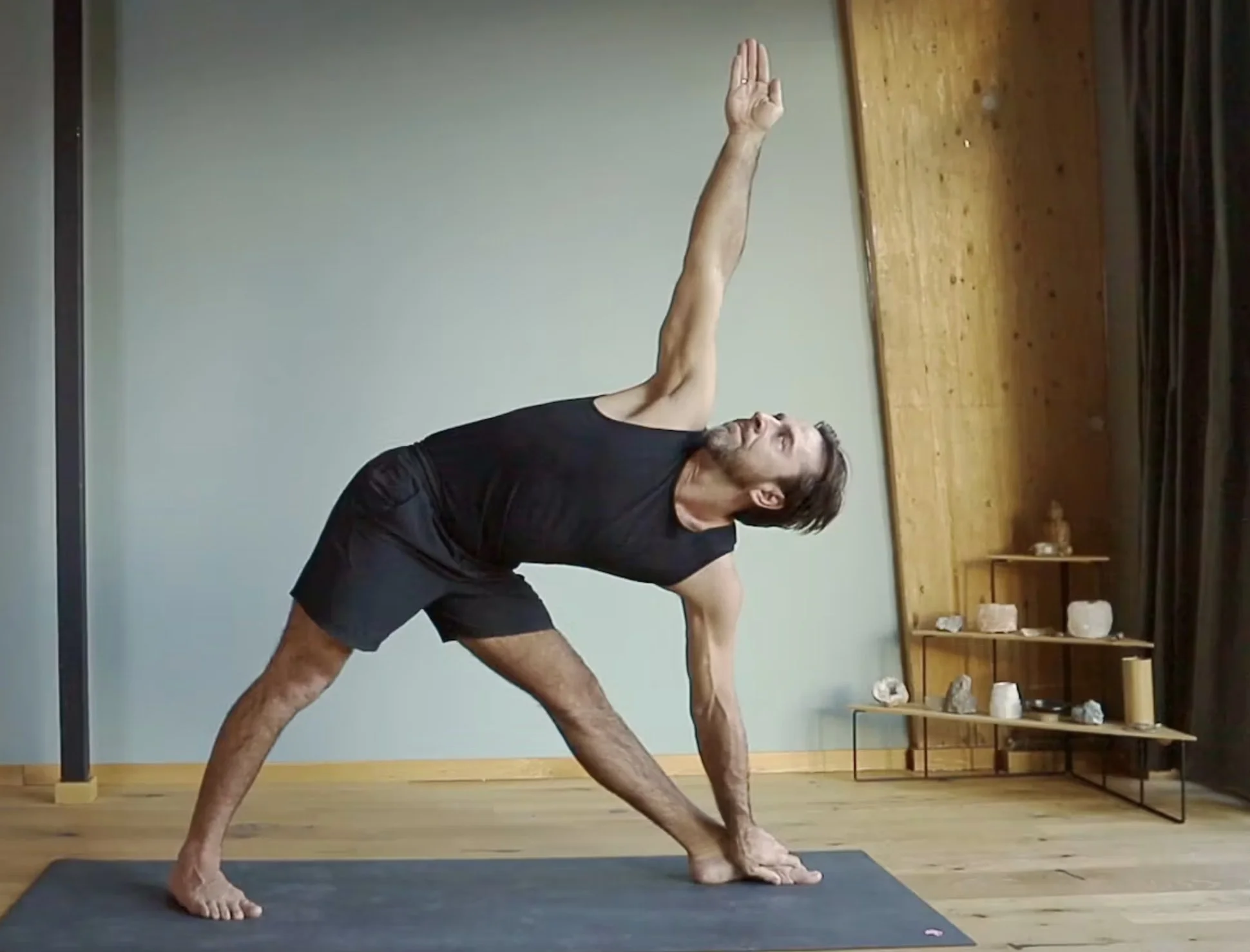 This is a brief summary of Trikonasana A. As you can see there is a lot of work going on in the state of this asana. This is how I have learnt to practice this asana safely for so many years and embody the philosophy of Bandha. Also there is an element of yin here too.